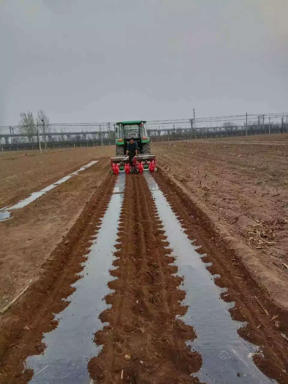 “城園豐”牌2MBF-1/2型玉米鋪膜施肥精量播種機(jī)是按照華北地區(qū)高寒冷涼山區(qū)覆膜玉米栽培農(nóng)藝要求精心改進(jìn)設(shè)計,主要針對美國引進(jìn)的先玉335玉米種子需單粒播種的特點,與12-25馬力四輪拖拉機(jī)配套使用,可一次性完成刮土整形、溝施底肥、鋪膜、壓膜覆土、膜上打孔、精量點播、穴式或條式覆土等多項復(fù)式作業(yè),具有結(jié)構(gòu)簡單,操作維護(hù)方便等特點,其優(yōu)點是:一機(jī)多用(播玉米可以通過增減鴨咀,達(dá)到高密、中密互換;‚換谷子排種器可以精量播種谷子。)與穴式覆土(覆土少,采光面大,提高地溫快;‚不易聚水,不易板結(jié),不用放苗,省工又省時。)可實現(xiàn)單粒精量播種,不傷籽種,節(jié)種省工、節(jié)本增產(chǎn),深受廣大農(nóng)民的歡迎。
