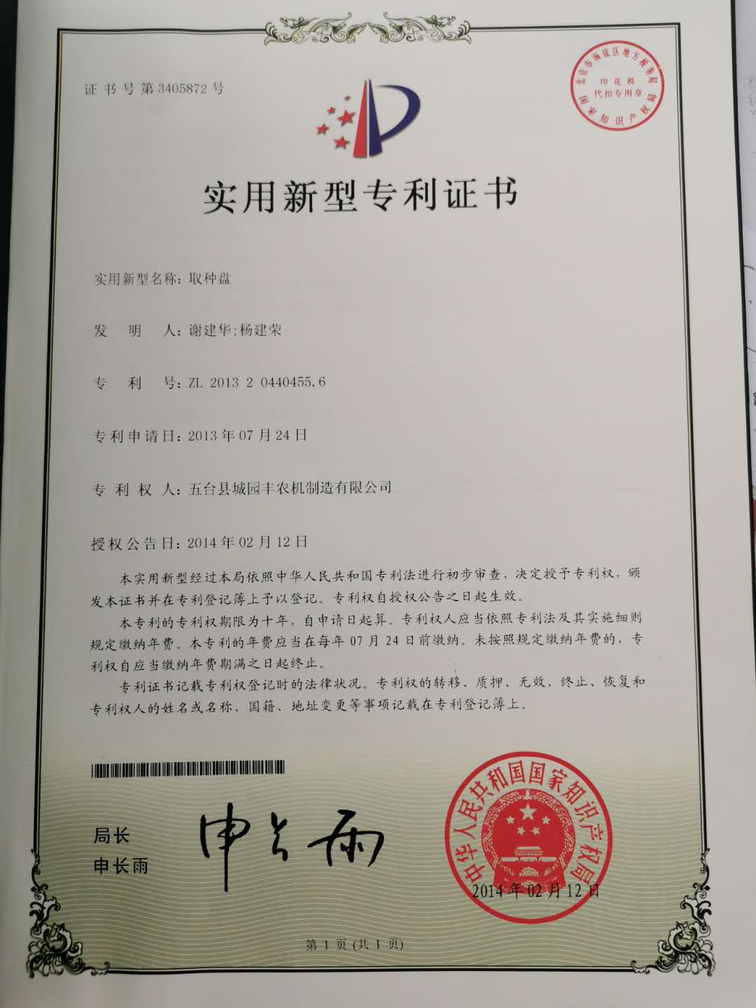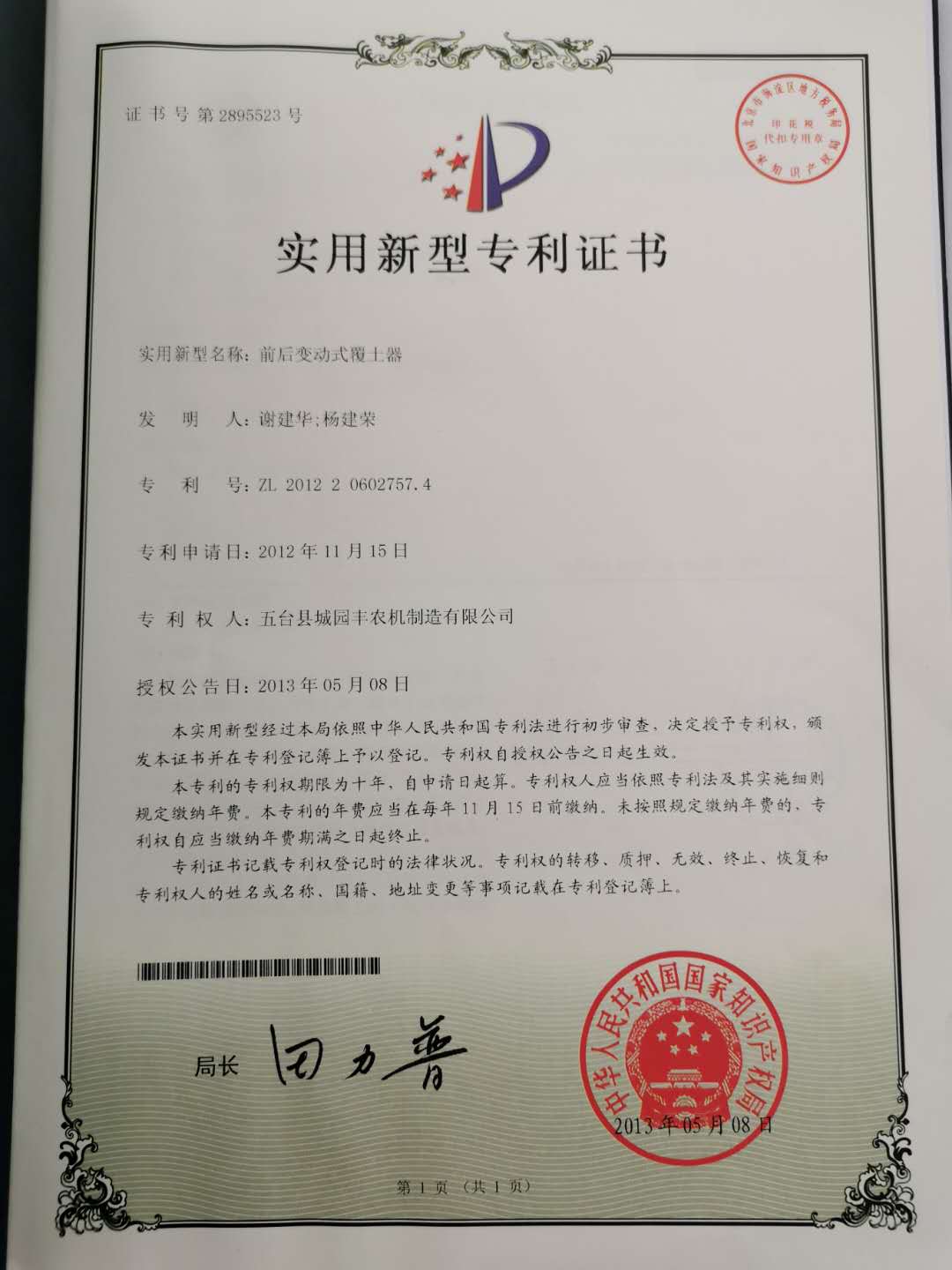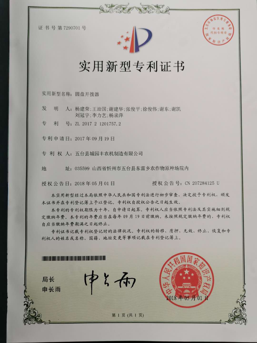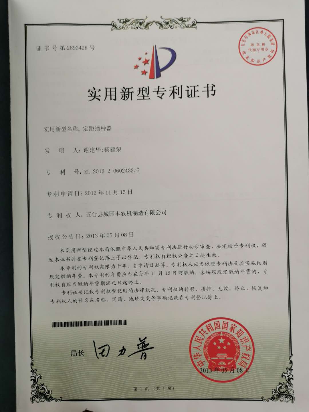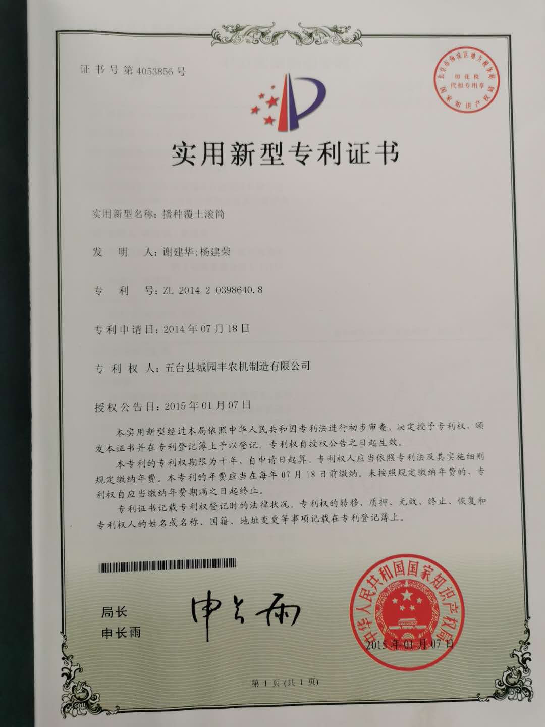 公司的主要產(chǎn)品玉米鋪膜精量播種機(jī)的研發(fā)制造推廣獲得了2013年忻州市科學(xué)技術(shù)進(jìn)步獎(jiǎng)、一項(xiàng)發(fā)明專(zhuān)利及5項(xiàng)實(shí)用新型專(zhuān)利等。